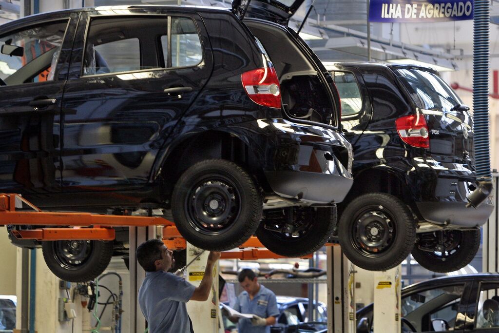 | Produktion deutscher Volkswagen-Autos in einem Werk in Brasilien. |